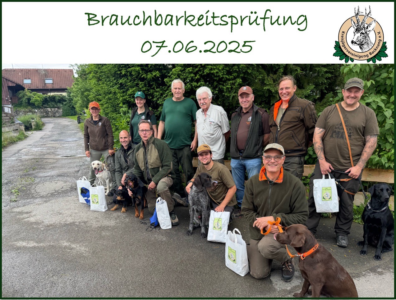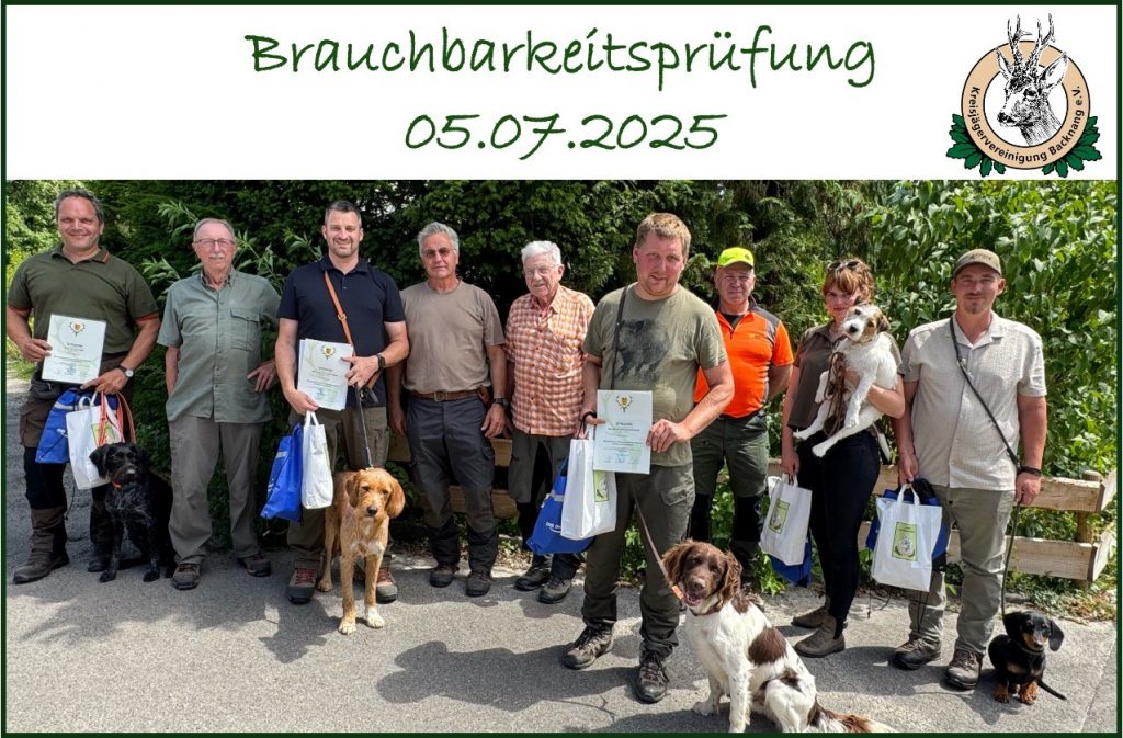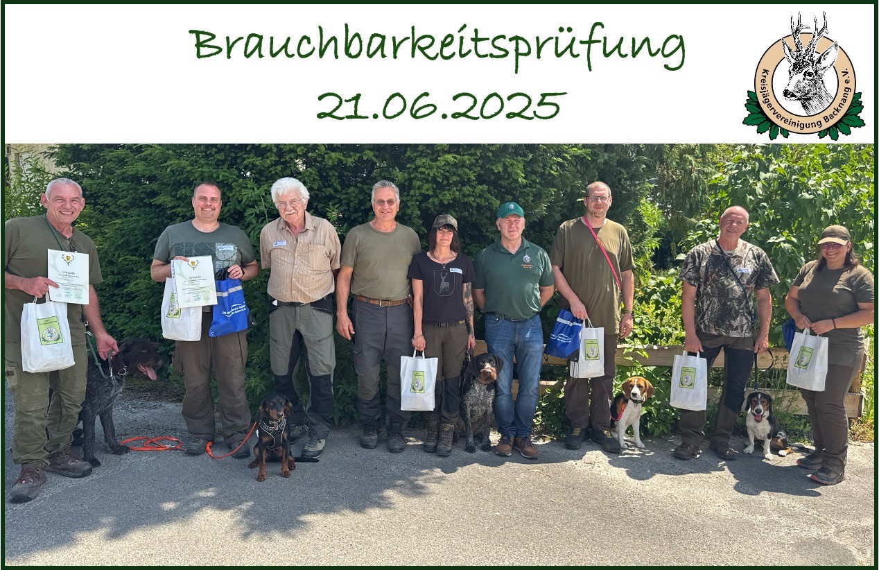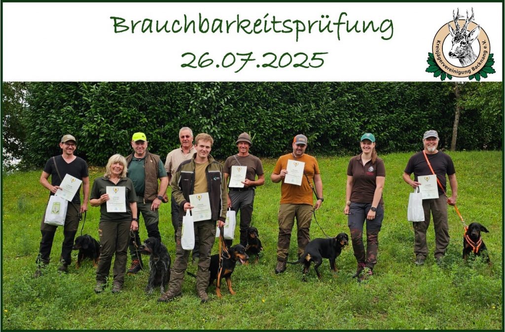 Im Rahmen von 4 Brauchbarkeitsprüfungen konnten insgesamt 23 Gespanne das Modul 1.1. Brauchbarkeit ausschließlich für Nachsuchen im Schalenwildrevier bestehen. Zusätzlich konnten 2 Gespanne das Modul 1.2 Erweiterte Brauchbarkeit Feld und Wald (nach dem Schuss) ablegen.